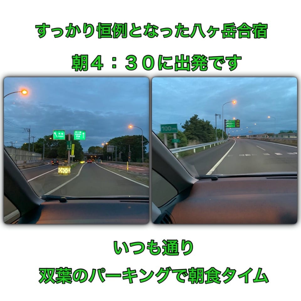 合宿のスタートは双葉SAでの朝食&フリータイムから始まります